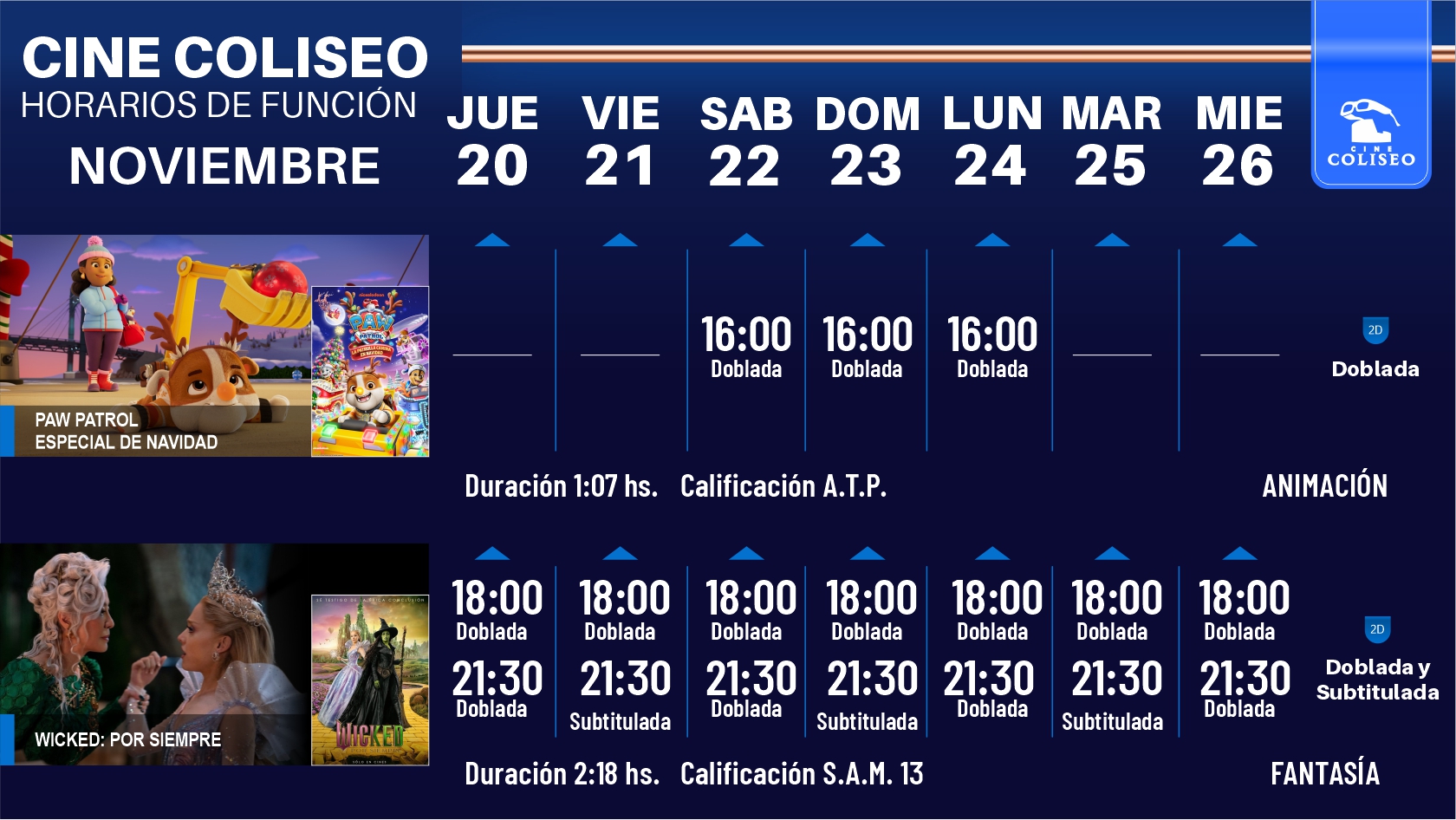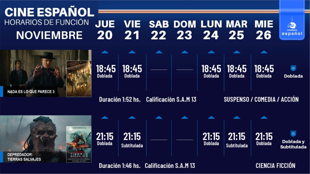 Cartelera semana del 20 al 26 de noviembre