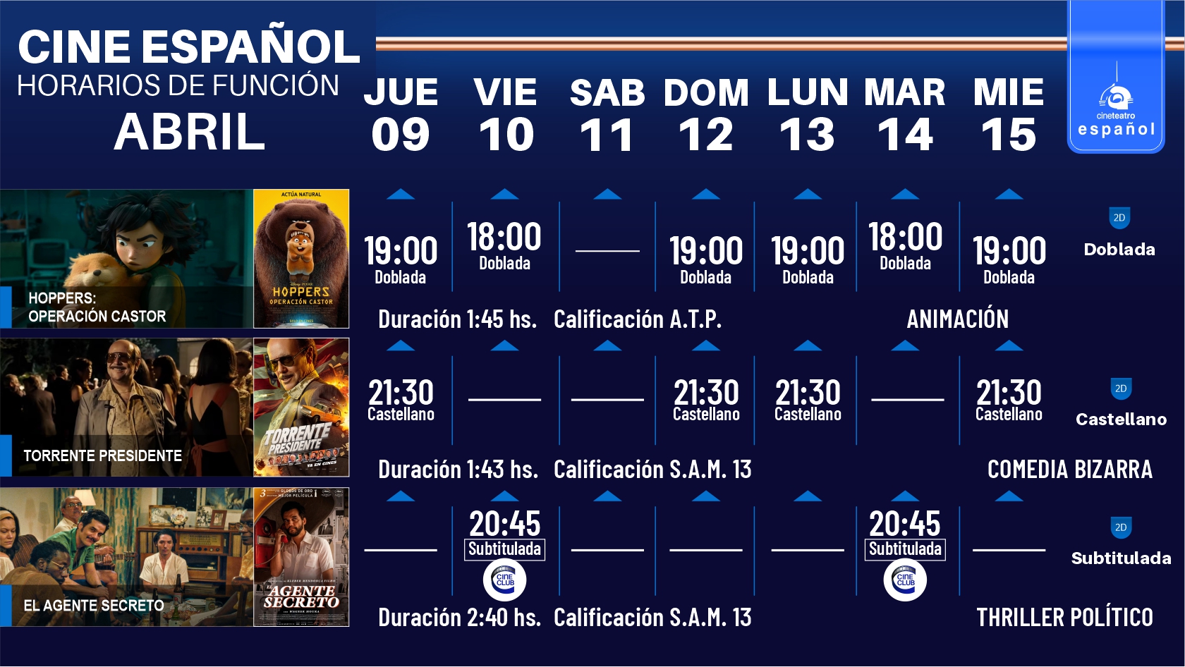 Cartelera semana del 9 al 15 de abril