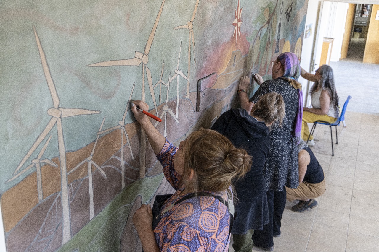 El objetivo de la actividad, estuvo orientado a que los participantes experimenten distintas técnicas de realización de murales, integrando procesos creativos, decorativos y artísticos que evidencian las propiedades de la tierra: sus ventajas, potencialidades, límites y los usos adecuados de las terminaciones naturales —como los revoques— dentro de propuestas de bioconstrucción. La capacitación puso en valor materiales no tóxicos, reciclables y ambientalmente responsables, alineados con prácticas compatibles con la salud humana y el cuidado del ambiente.