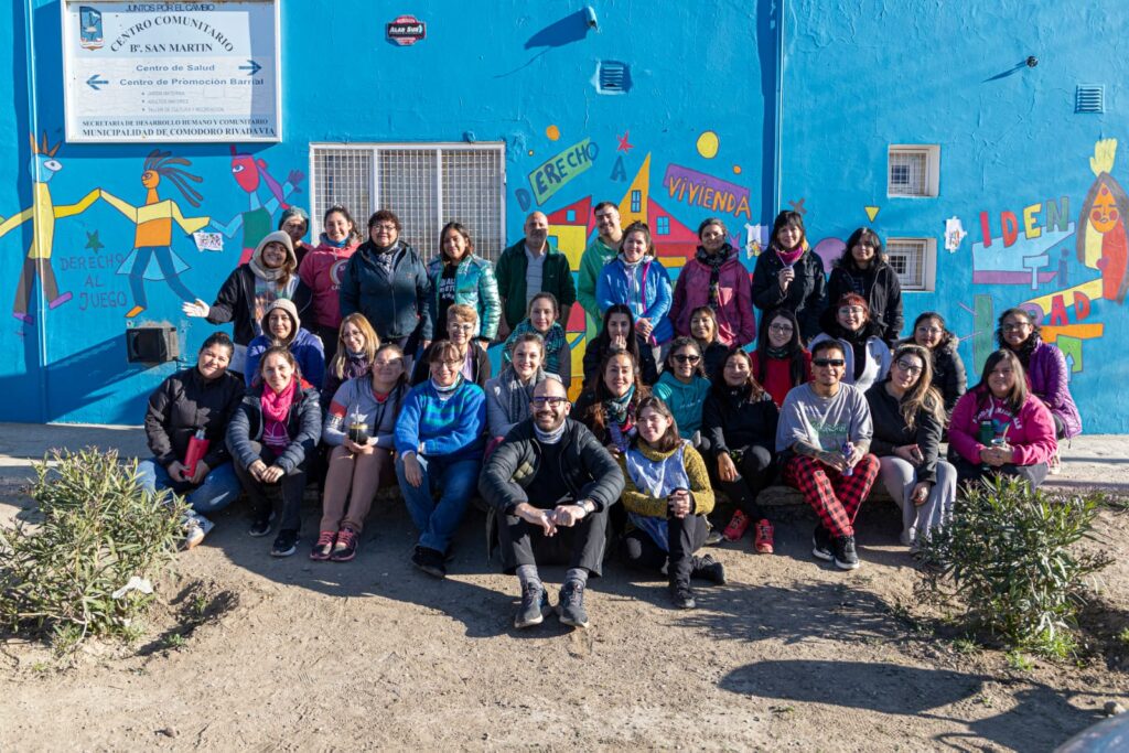 Como parte del proyecto pedagógico del Jardín Maternal, padres, docentes y auxiliares, pintaron un mural en el frente del Centro de Promoción Barrial (CPB). La propuesta, realizada en conjunto con el Instituto N° 806, esboza los derechos al juego, la identidad y la vivienda.