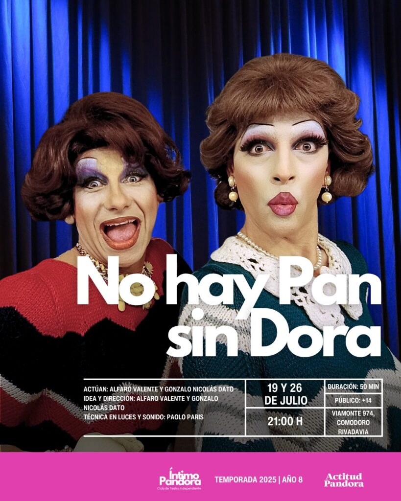 Prepárate para reír con las nuevas funciones de "No Hay Pan Sin Dora". Fechas: 19 y 26 de julio Horario: 21:00 hs Lugar: Sala Actitud Pandora – Viamonte 975 Reservas: Accedé al link de