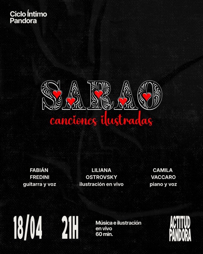 Ciclo íntimo, donde los trazos cobran vida y se expresan entre canciones y emociones. Fecha: Sábado 18 de abril Horario: 21:00 hs Lugar: Sala Actitud Pandora (Viamonte 975) Entradas: 297